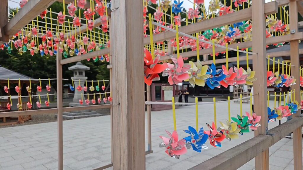 真ん中には風車の飾り付けが。この日は風も吹いていたので、それに合わせて一斉に回るのを見て涼しい気持ちになれます。