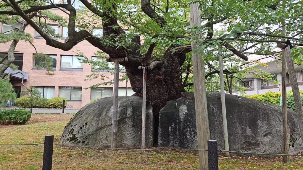 その後は途中裁判所へ寄り道して、あの有名な石割り桜を見ました。