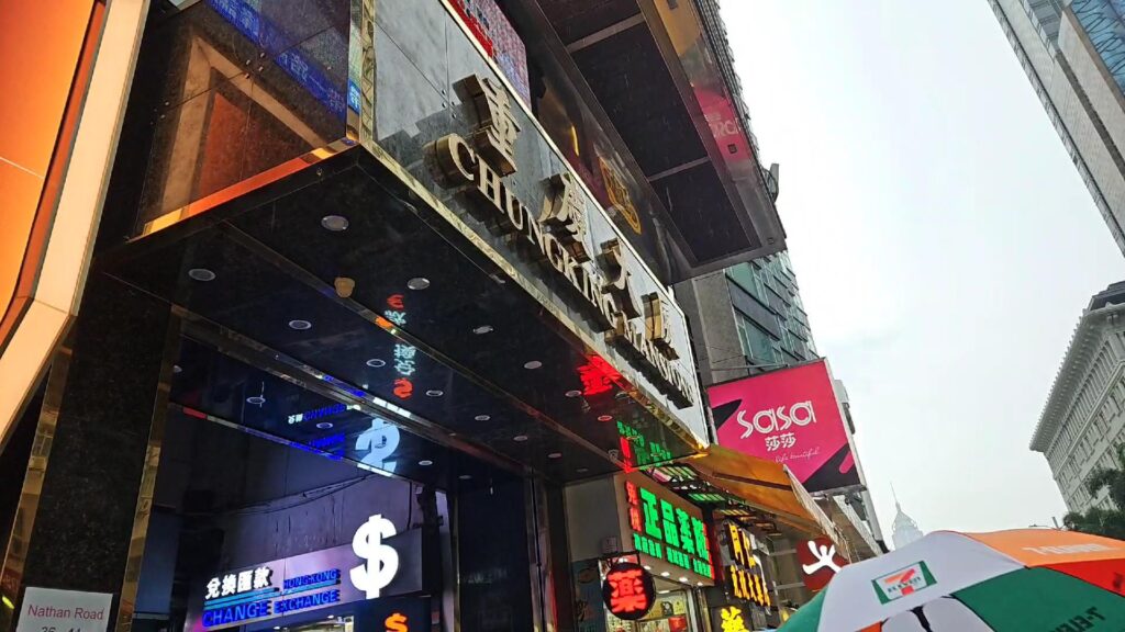 ネイザンロードの一角に香港で両替所と言えばココ!という「重慶大廈」に寄ります。
