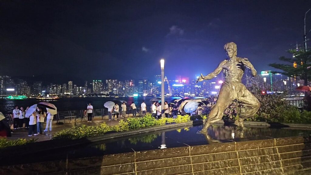 ちなみにこのショーを見たのは、アベニューオブスターズという遊歩道なのですが、香港映画で活躍した人達(俳優さんだけでなく、監督とか、幅広く関係者)の手形があります。